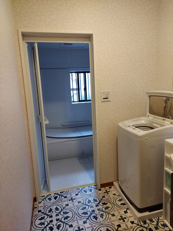 築30年以上経っていて、傷みも激しく、洗面所は床・壁・天井全て解体し、施工しました。洗面所扉部分は、収まりが悪く、特に気を使いながら施工致しました。施工後、浴室に白蟻が再発生するなど、ハプニングもありましたが、白蟻駆除を実施し、その後は快適にお使いになられているとご報告を頂きました。良かったです。これからもよろしくお願い致します。